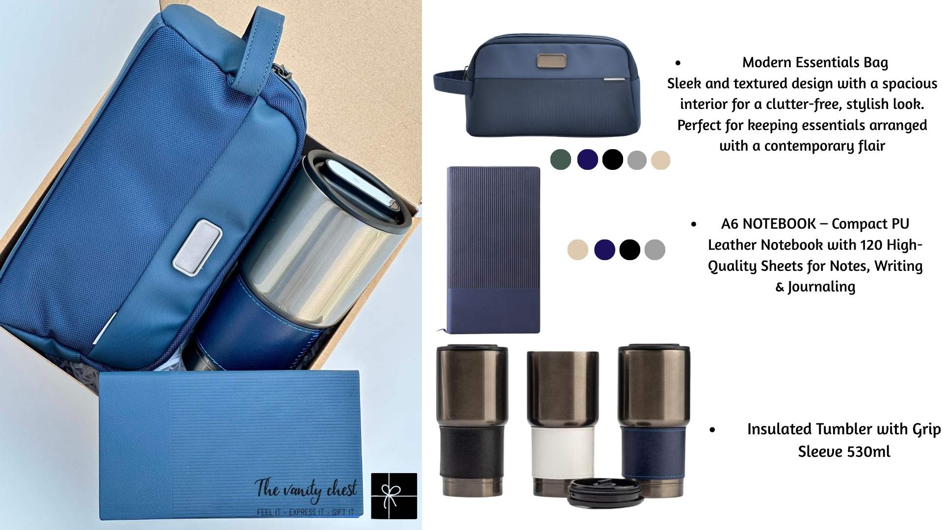 - Modern Essentials Bag Sleek and textured design with a spacious interior for a clutter-free, stylish look. Perfect for keeping essentials arranged with a contemporary flair